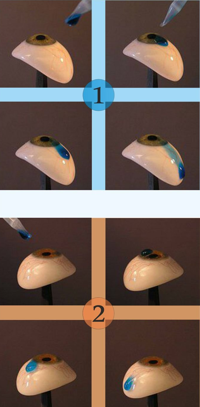 Špeciálne sklo: Tekutina sa správa prirodzene, je rovnomerne rozložená na povrchu a pôsobí ako klzký filmový povlak medzi viečkom a protézou.